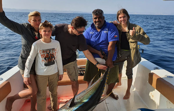 Gulf of Oman is rich in variety of fishes including Mahi Mahi (Dorodo), Yellowfin Tuna, Blufin Tuna and Barracuda. Our Omani captains are good sound knowledge about best fishing places in Muscat waters on the day. Boats are equipped with professional right equipments. Enjoy fishing experience in the stunning waters of Oman on board 'Big Catch', Muscat's premier sea tours organizer sidab sea tours game fishing charter boat. recommend you always wear a hat, sunscreen and clothing which will protect you from the sun.